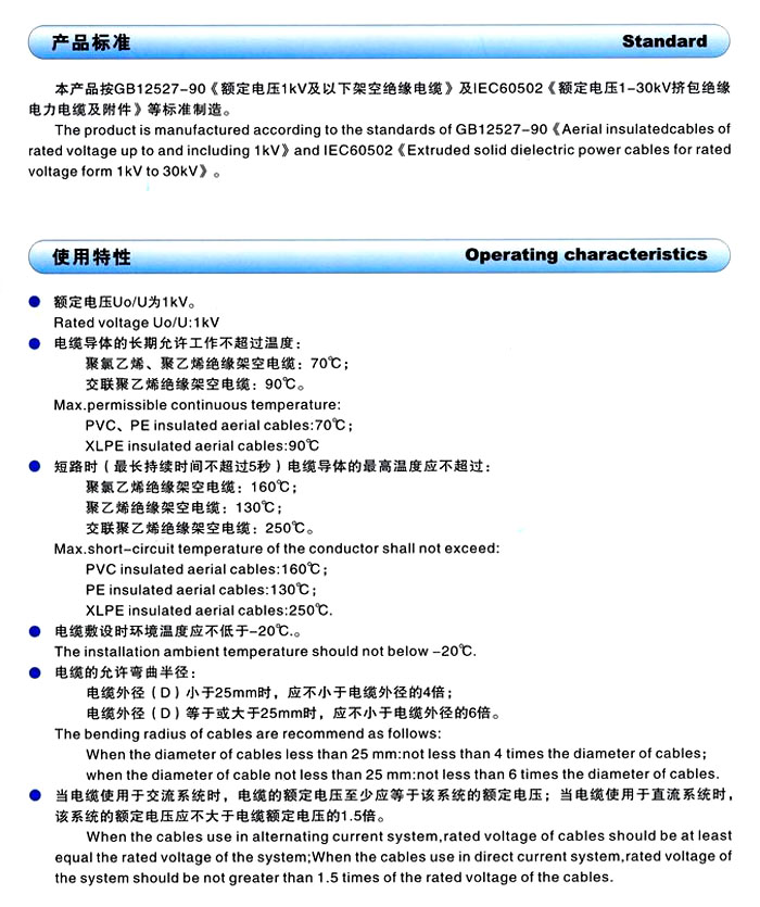 案例名称:Rated voltage 1kV and below the overhead insulated cables